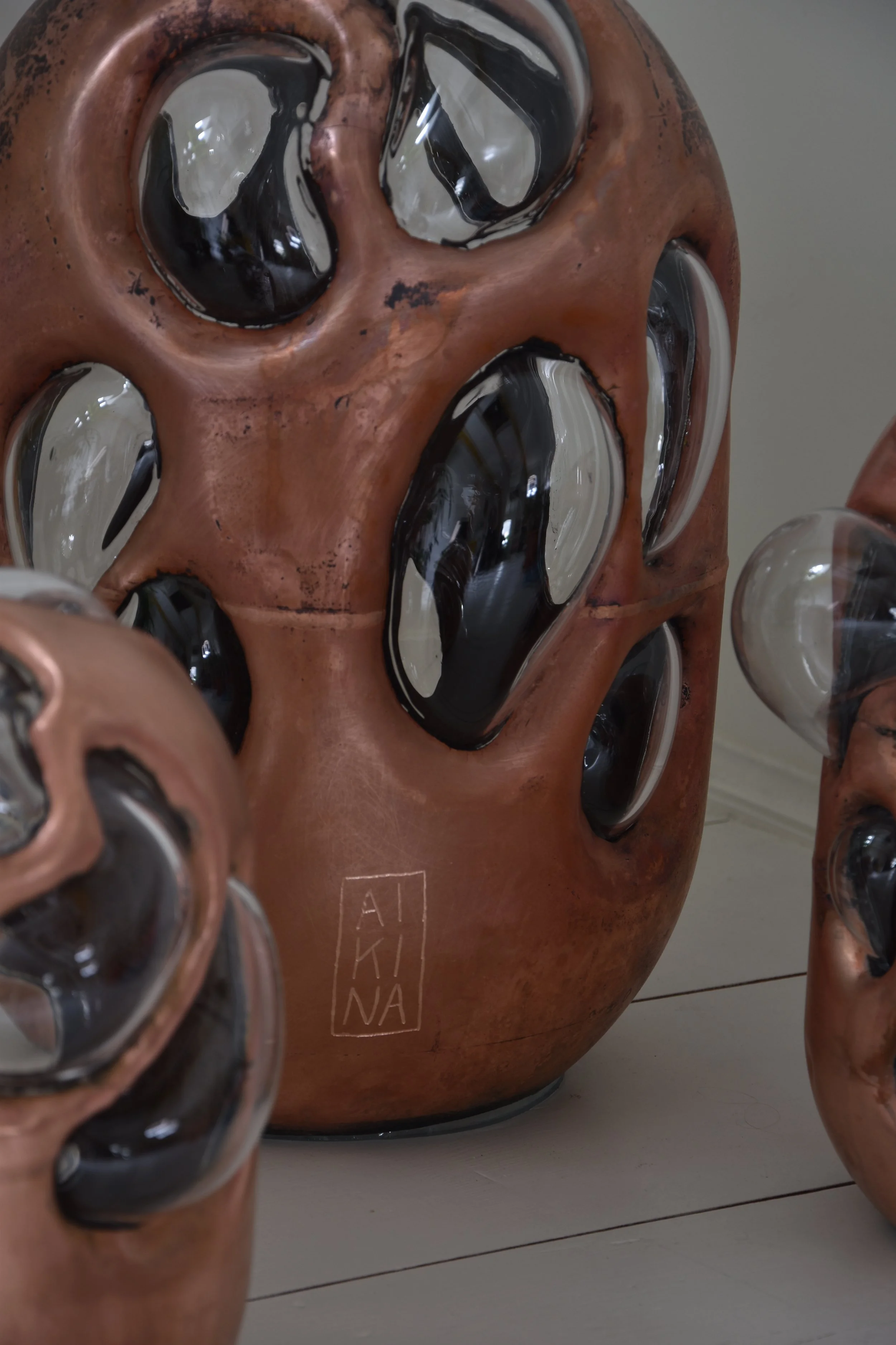 Studio Aikina began in 2023. Guided by my love for nature and light, I started the studio by experimenting with copper and blown glass, exploring ways to bring some of nature’s curiosities into our living spaces.